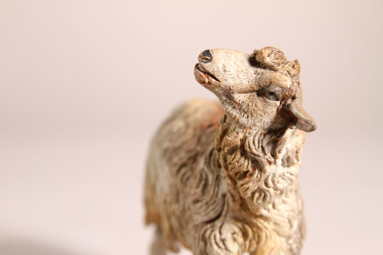 Neapel, 18. Jahrhundert, Terracotta, Glasaugen, Bleiohren, Bleihörner