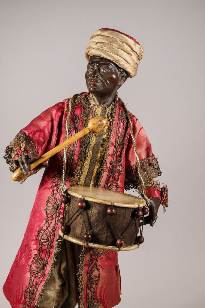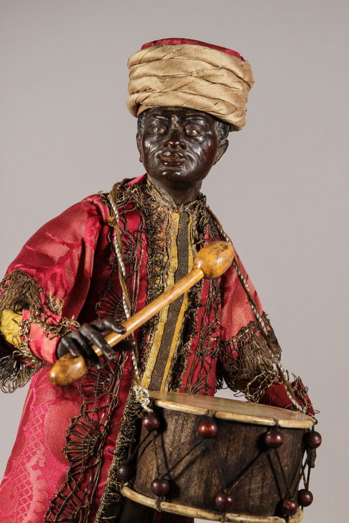 Neapel, 18. Jahrhundert, Glasaugen, originale Kleidung, Trommel neu