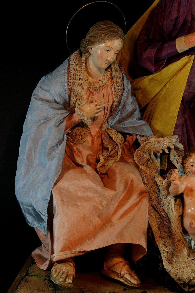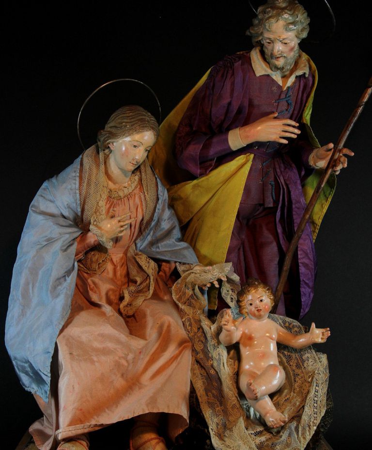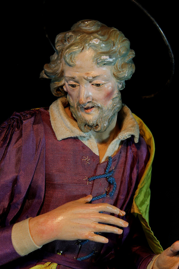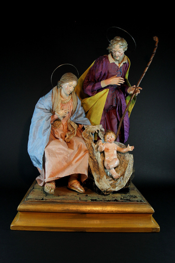 Neapel, Ende 18. Jahrhundert, auf Holzsockel montiert, orig. Kleidung, hintermalte Glasaugen,
