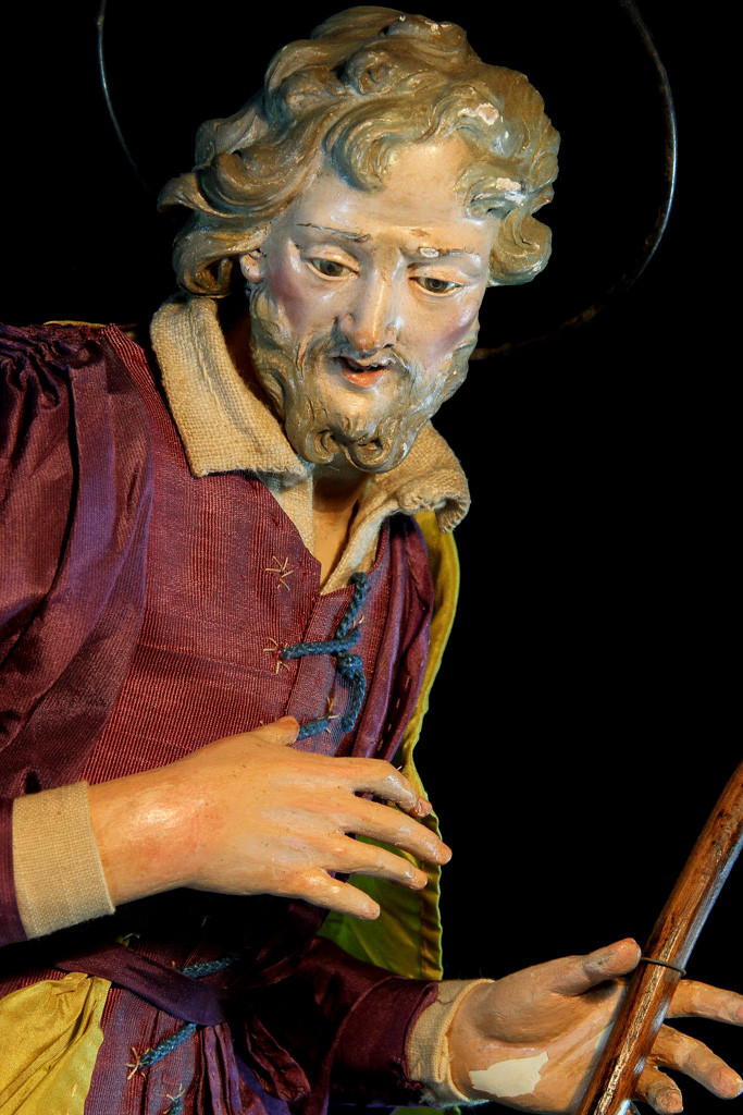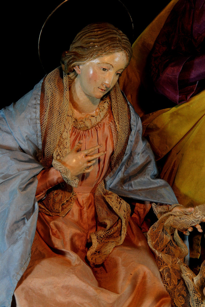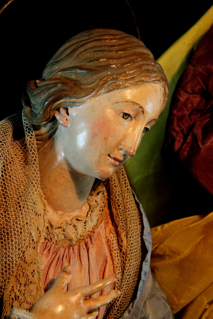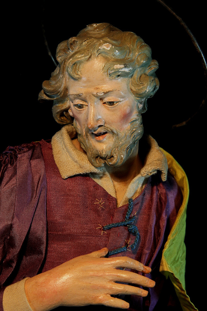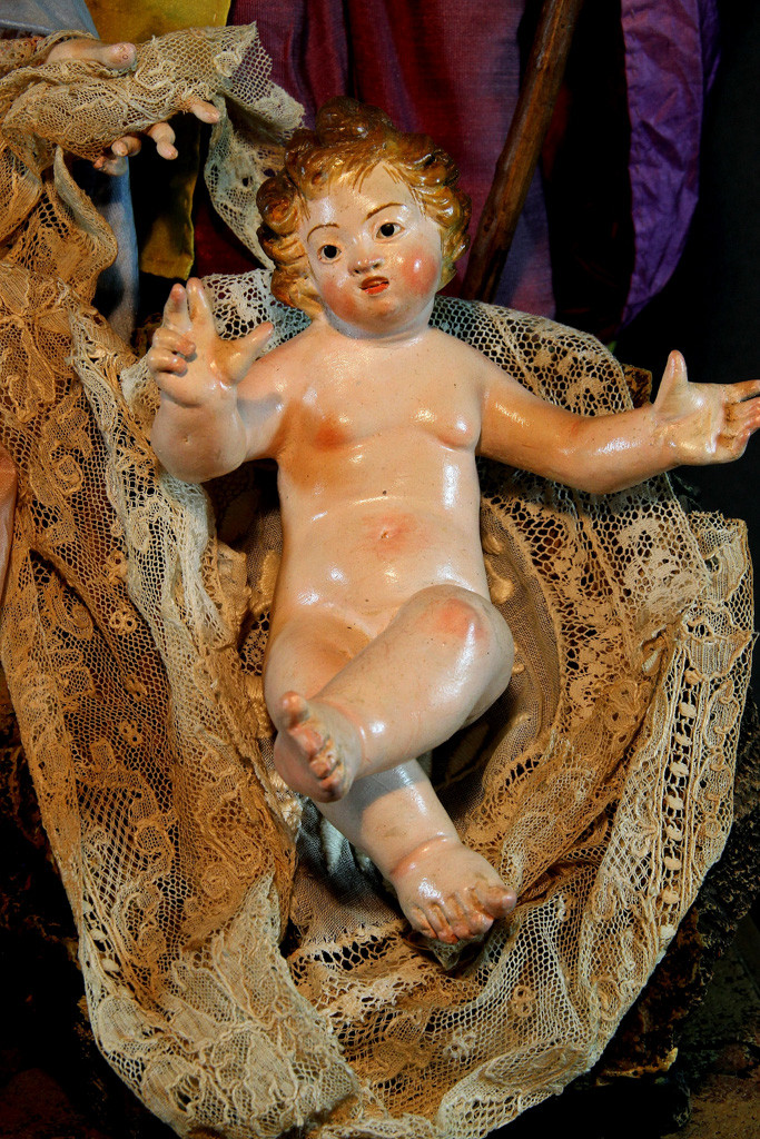 Neapel, Ende 18. Jahrhundert, auf Holzsockel montiert, orig. Kleidung, hintermalte Glasaugen,