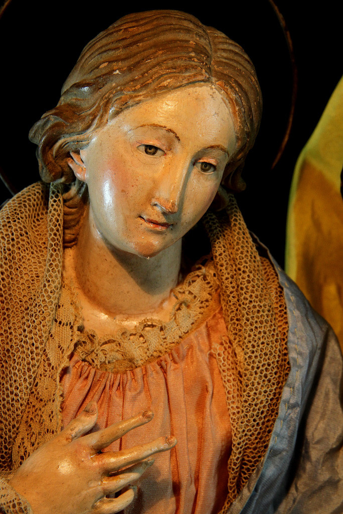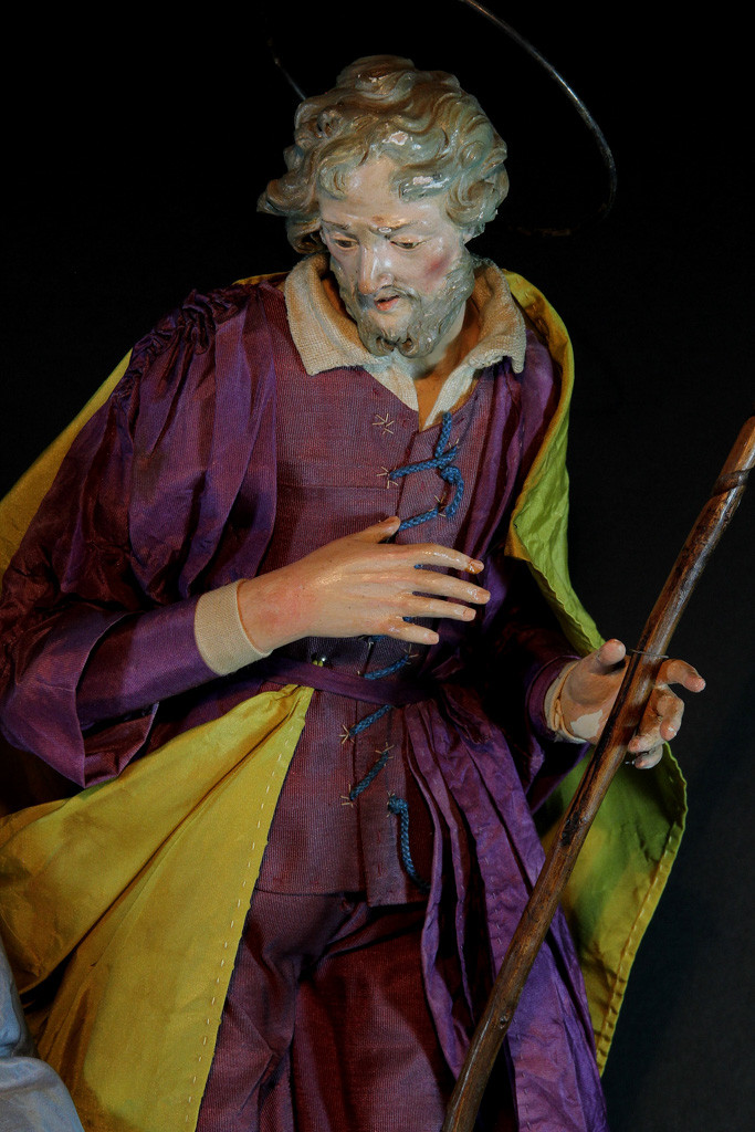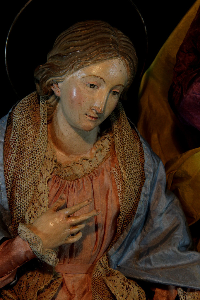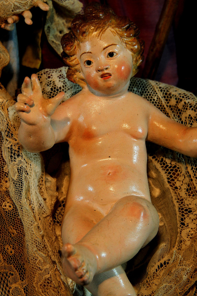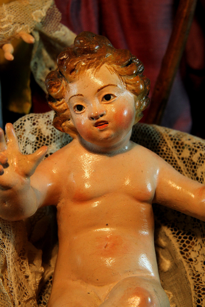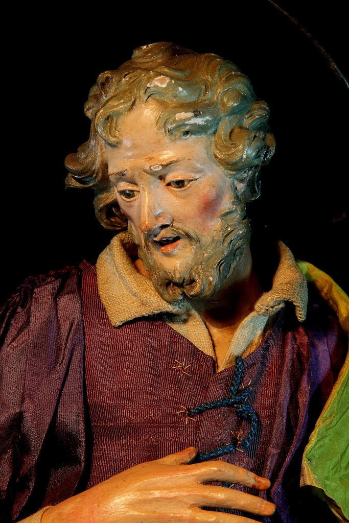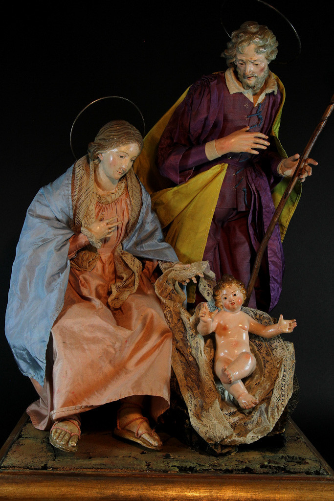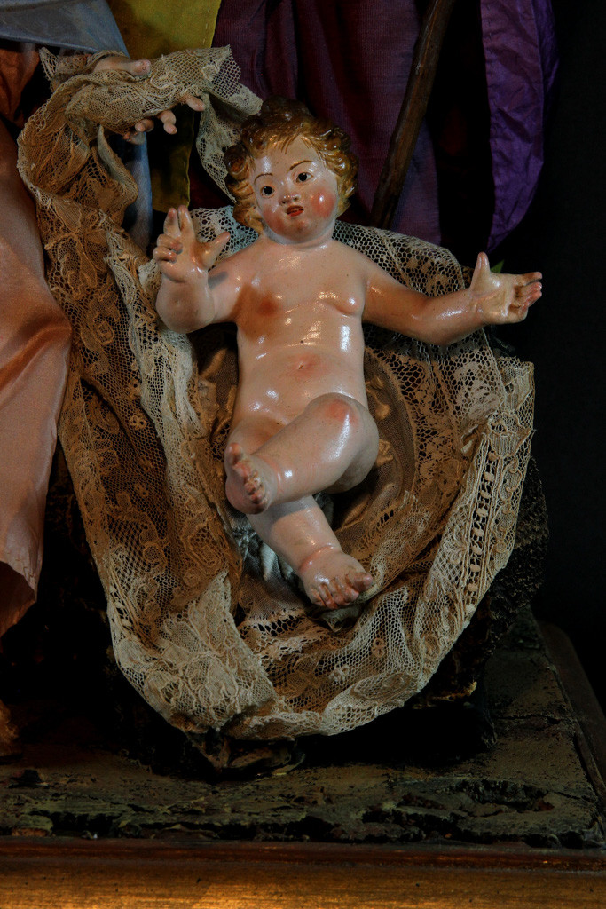 Neapel, Ende 18. Jahrhundert, auf Holzsockel montiert, orig. Kleidung, hintermalte Glasaugen,